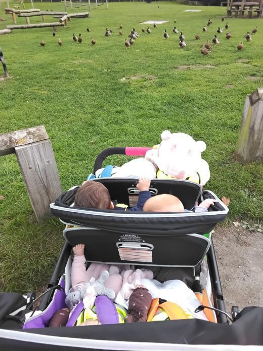 Whilst walking there, we all waved and babbled to the cars and buses as they passed! When we got to the park, we were all very excited to see the ducks. Some of us clapped and said "Quack."