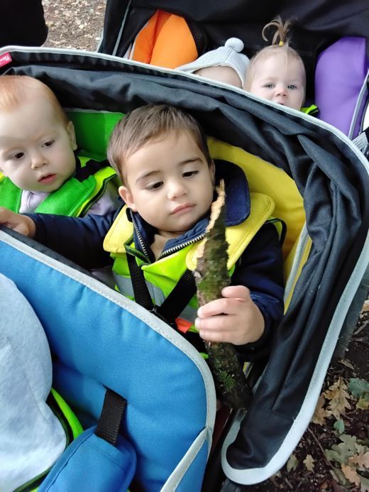 Over the last few weeks, Pip's children have been out in the community on small autumn woodland walks. We all wrapped up nice and warm and put on our hi-vis jackets! We then all got into the pushchair and walked down to Neatherd Moor!