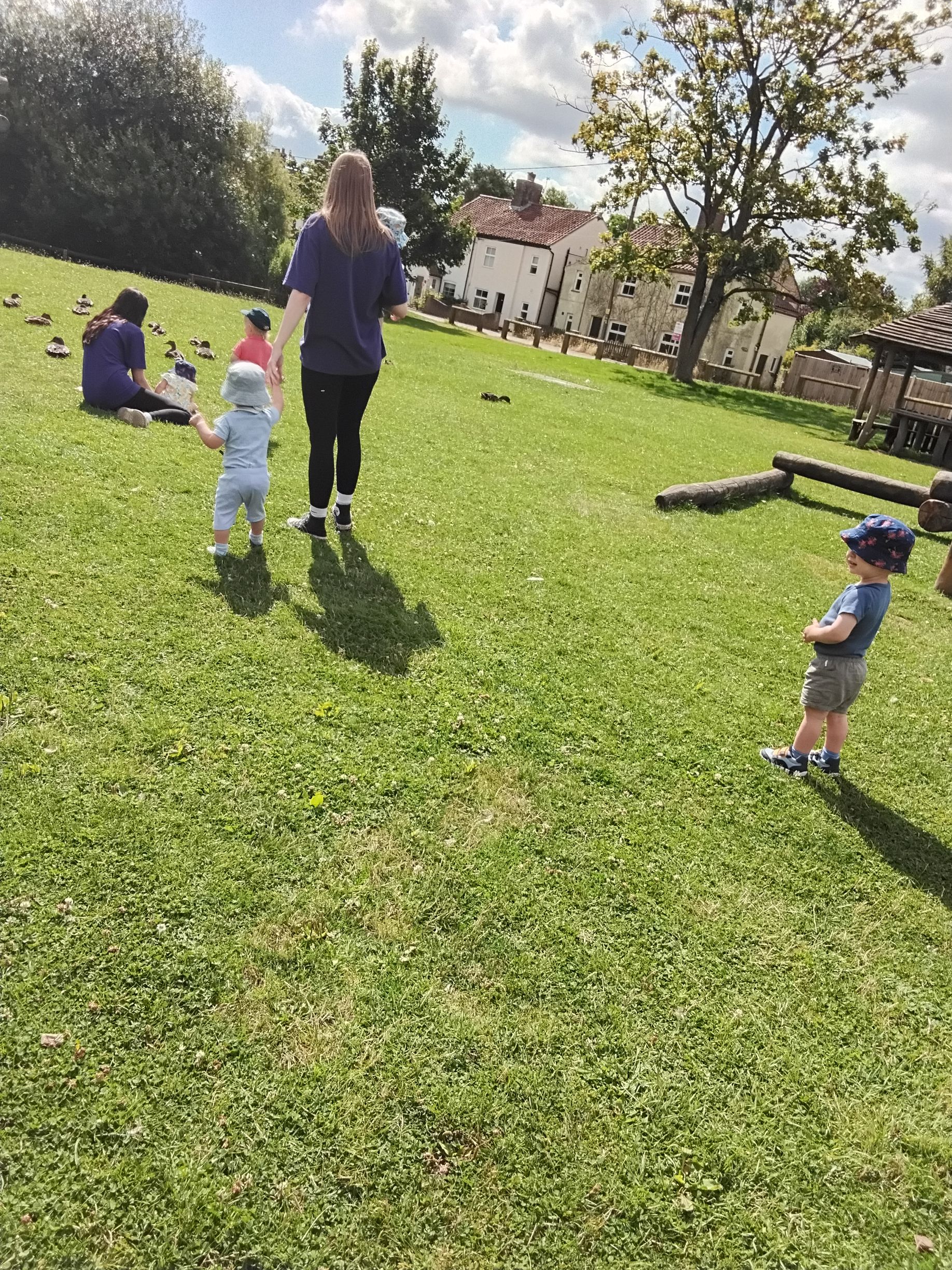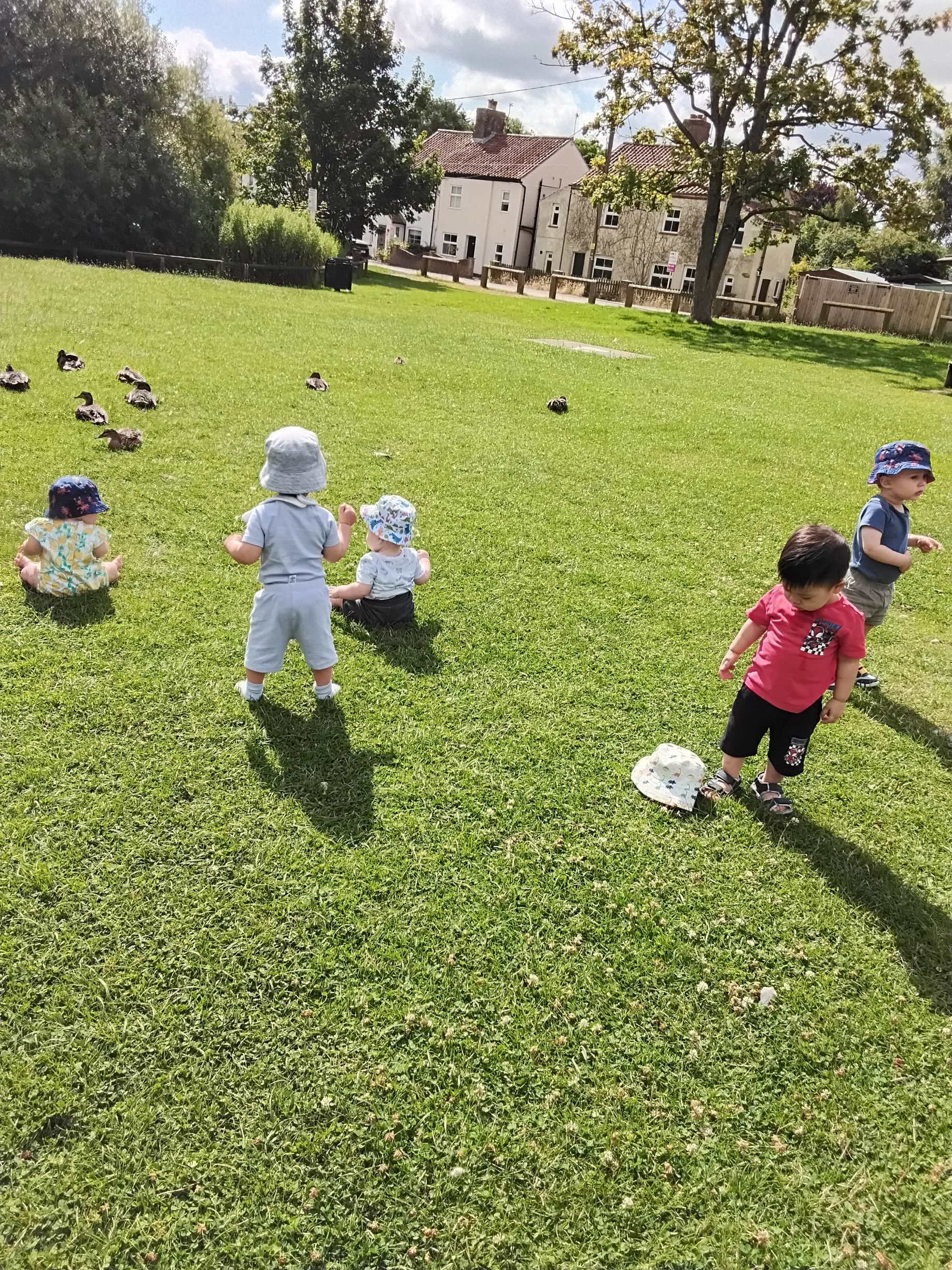 Seeds also visited the ducks, they all sat down and watched the ducks run around, the Seeds grown-ups talked to the children about how there is mummy ducks and ducklings. Some of seeds quacked at the ducks, the ducks were quacking very loudly back at us.