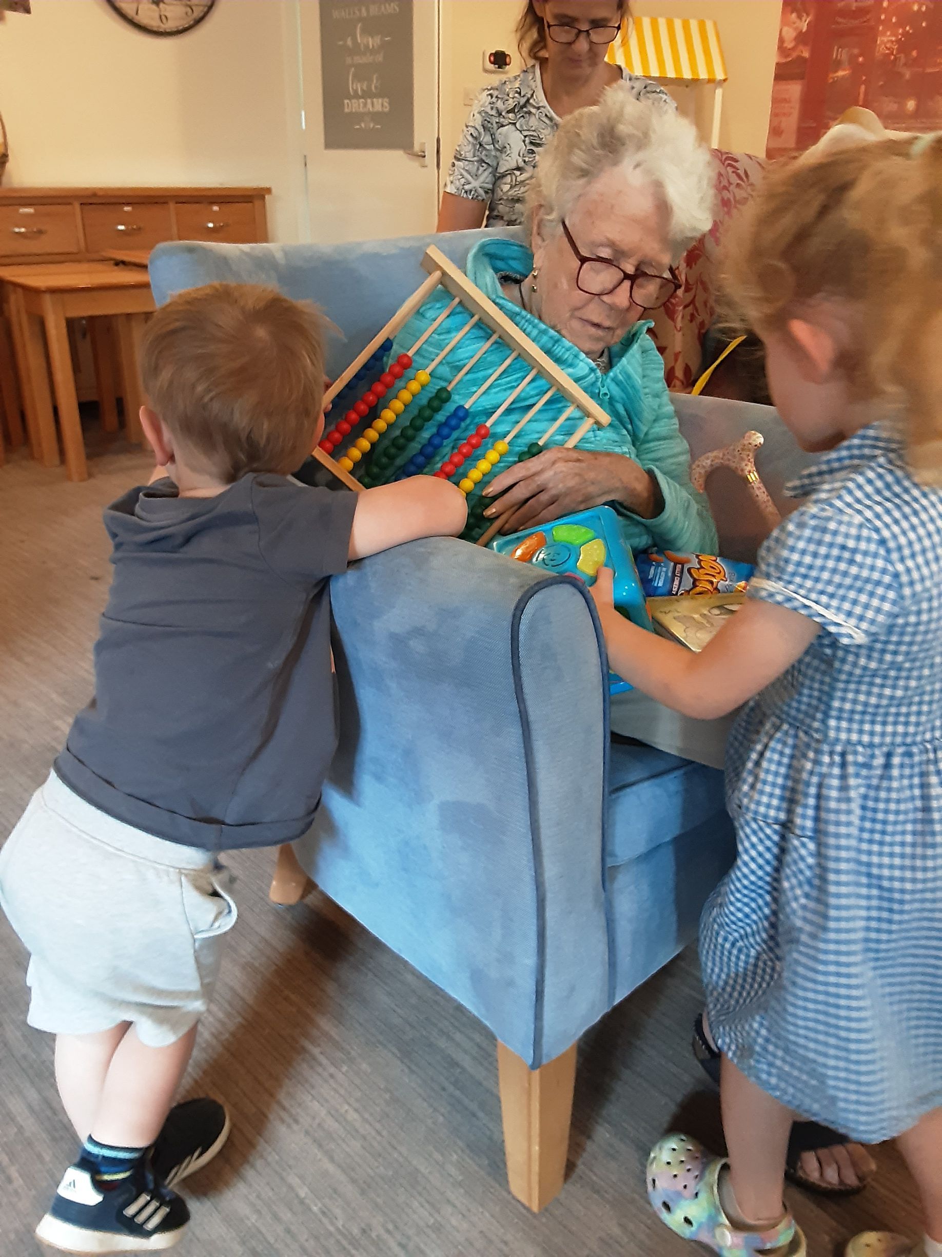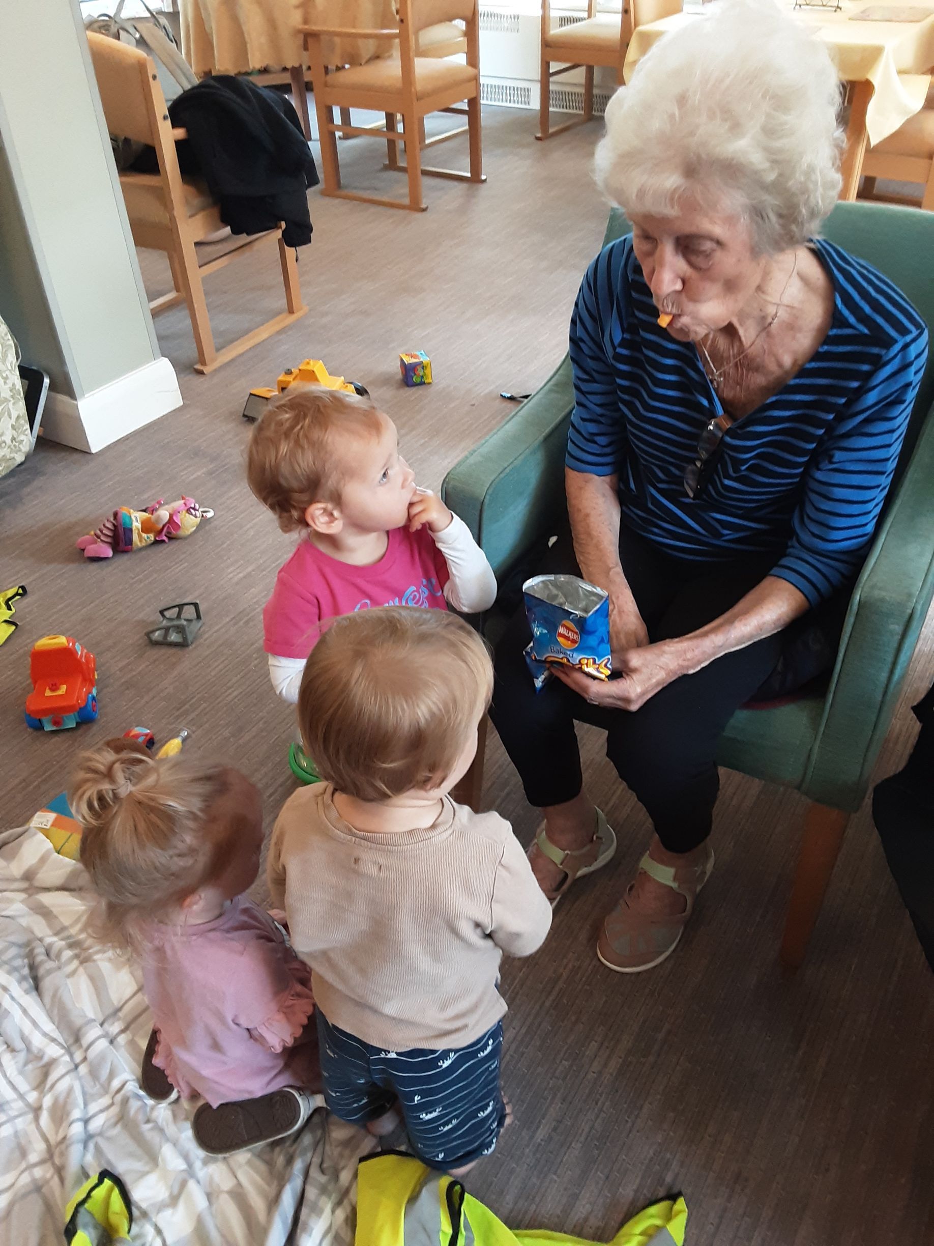 We regularly visit 2 local Care Homes in Dereham York House and Eckling Grange. The children and residents love the visits we have and gain positive experiences from them. The children are excited to tell the residents about what they have been doing at nursery, take them artwork they have created, sing to them, have stories read and have nice treats to eat. Research shows that socialising children with the elderly has a positive effect on both parties emotional well-being.