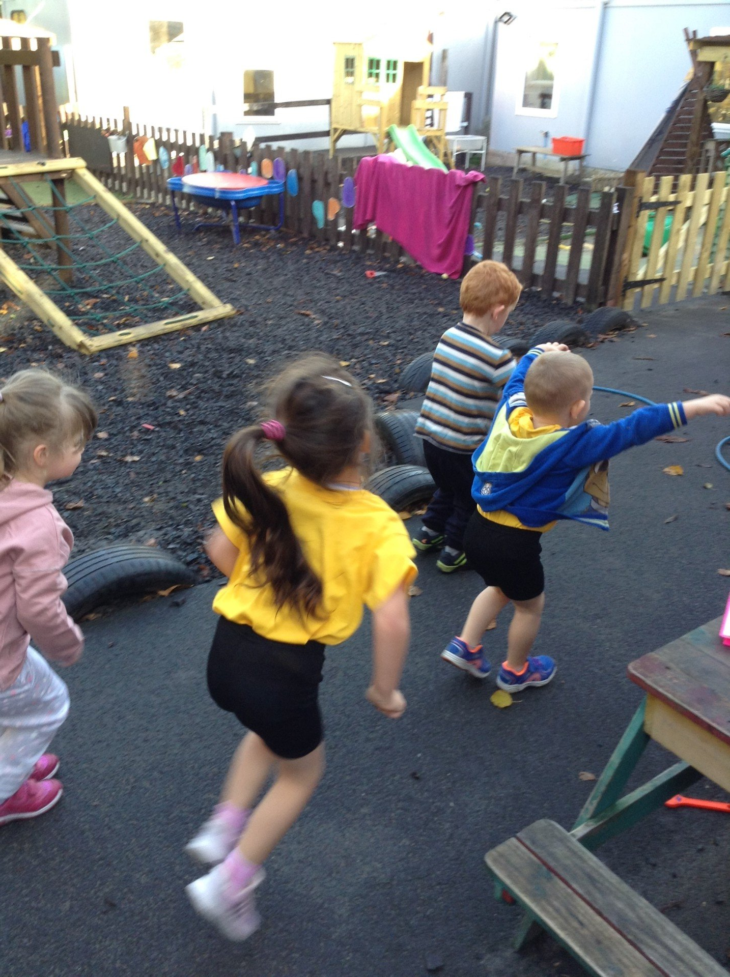 Here at Little Footsteps we offer weekly P.E Lessons to the older per-school children. We supply the children with sports clothing to wear and depending on the weather this takes place either inside or outside. The children learn skills such as dressing and undressing, balancing, running skillfully, the impact of exercise has on the body and much more.