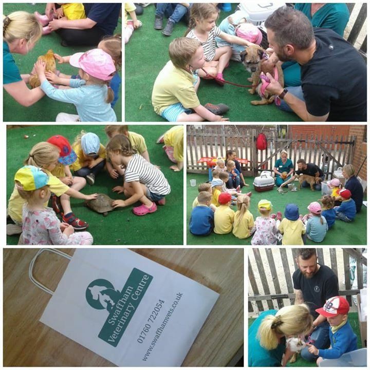 Another brilliant morning at Little Footsteps. We had a visit from swaffham veterinary centre! Jon and Kelly came and they spoke to us about how we look after our pets and we learnt about the different foods the animals eat We were super lucky and got to use our kind hands to stroke a chicken a guinea pig and a tortoise Our most favourite part was stroking Pixie (a little dog) and giving her treats! We also got to listen to her heart beat through the stethoscope We had such an amazing time!! A MASSIVE thank you to Jon and Kelly for sparing some of your busy time to come out and teach us about looking after animals and letting us meet your animals Thank you for our little bags with our colouring sheets, bandages, masks and hats, we love them Thank you to all the people who help to look after our animals ❤