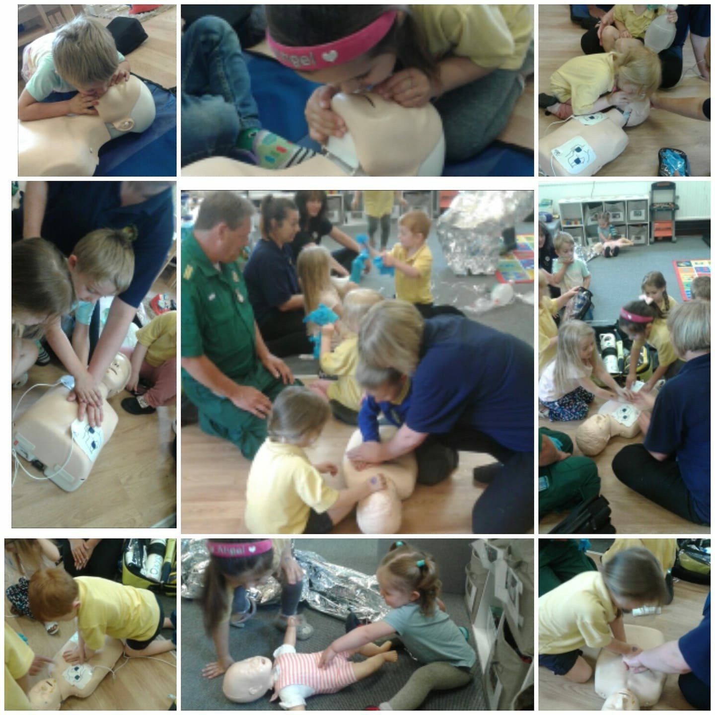 What a fantastic afternoon for our Little Footsteps children. We have been so lucky to have John a first responder come in with lots of equipment for our children to explore. We have been learning and practising basic CPR. We've also been learning how to use a bandage dressing, exploring a defibrillator and listening to our heartbeats using a stethoscope. Here are just a few photos of our amazing time. A MASSIVE thank you to John for coming in to teach us all about how he helps people! A big thank you to all of the first responders, paramedics and health roles that help us