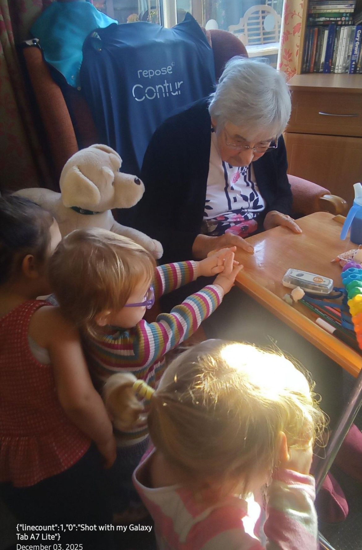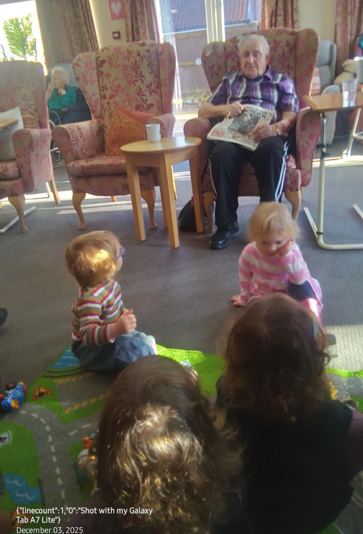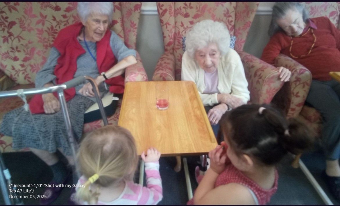 The residents had decorated ready for Christmas and we saw the colourful decorations and the amazing gingerbread display. We did a range of activities such as sing our nursery rhymes, we spoke to the residents and played with the cars we took with us.