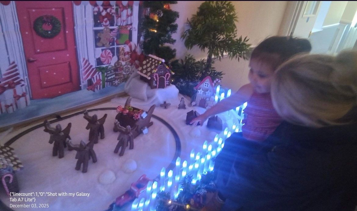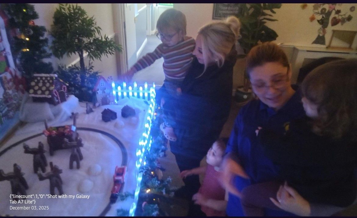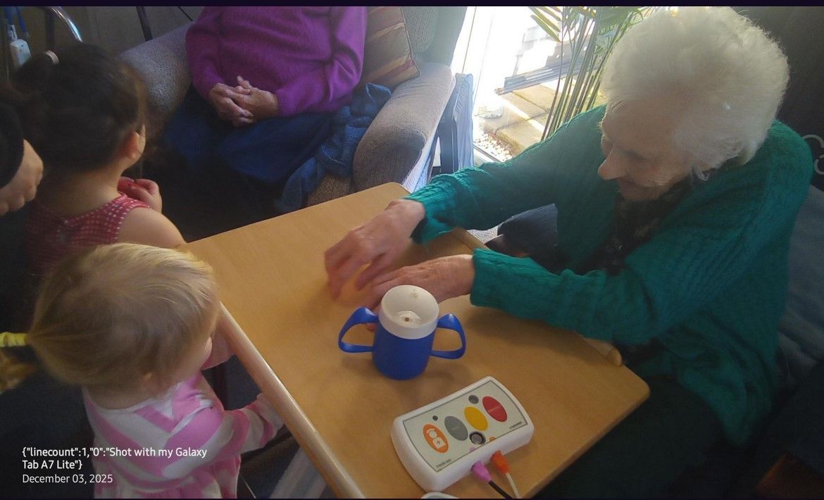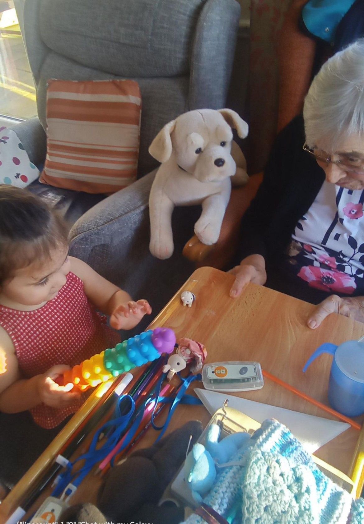 The residents had decorated ready for Christmas and we saw the colourful decorations and the amazing gingerbread display. We did a range of activities such as sing our nursery rhymes, we spoke to the residents and played with the cars we took with us.