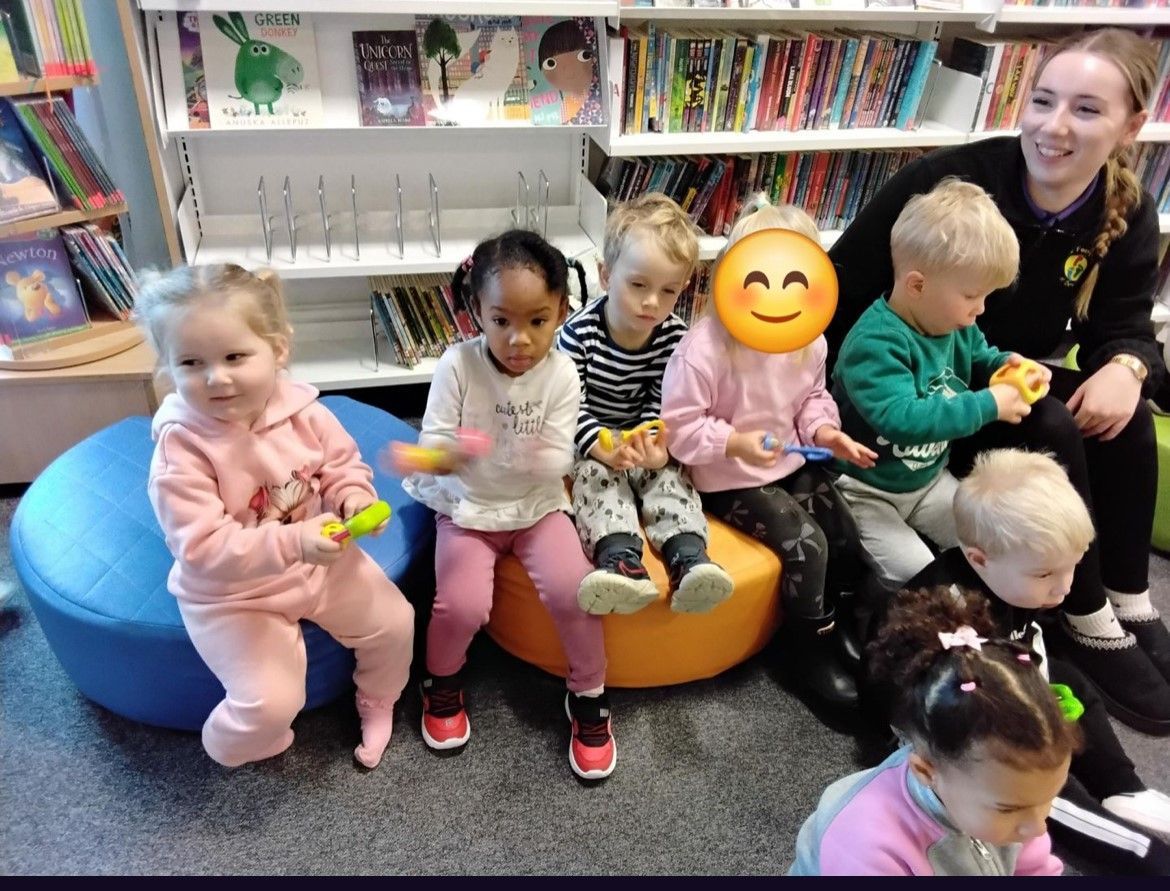 The children headed off to the library for a little trip to bounce and rhyme music session.